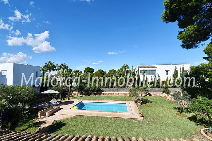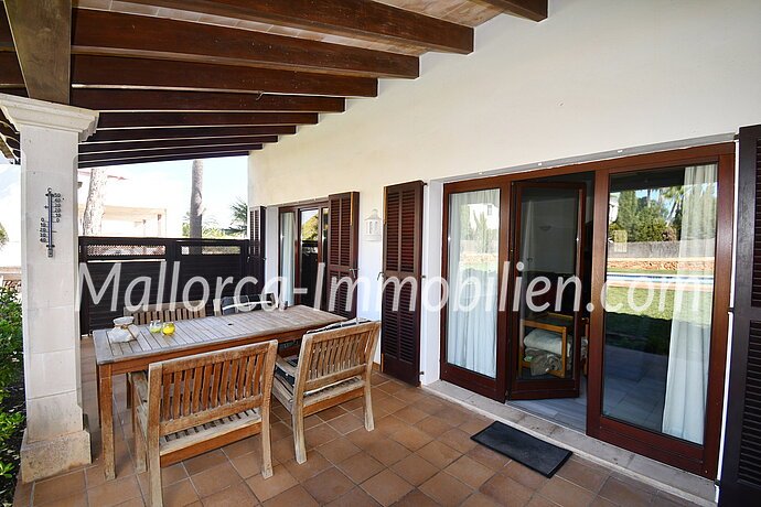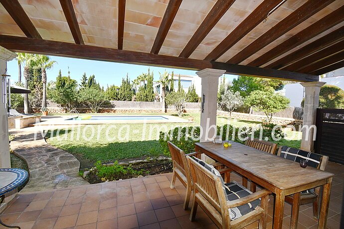 The covered sun terrace overlooking the pool and the spacious garden invites you to relax during the wonderful summer months.